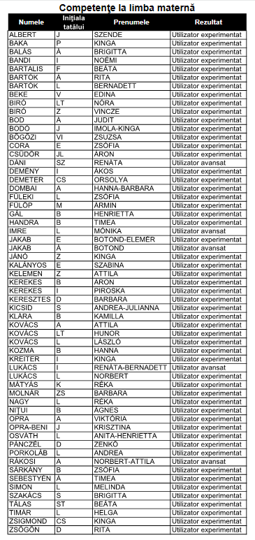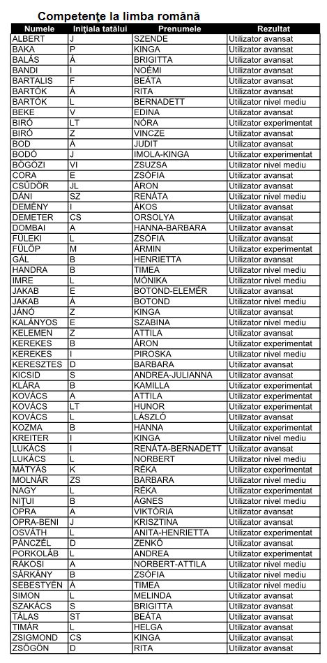 Román képességvizsga értékelése  ITT